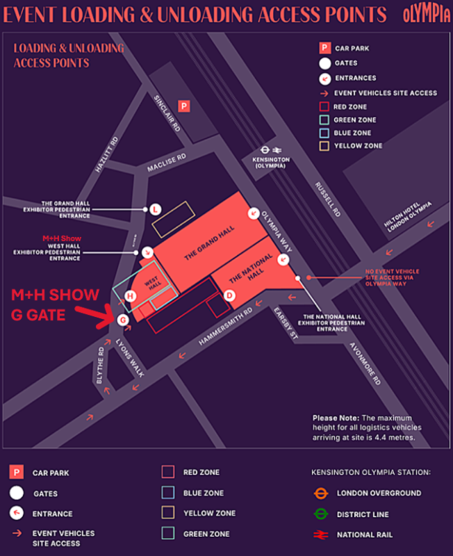 If you are arriving by public transport or on foot, which we actively encourage, please refer to the Deliveries and Timings section and ensure that you do not arrive outside of those times as you will, unfortunately, be refused admission. During build-up and breakdown access to the Show is via the main entrance on Blythe Road.